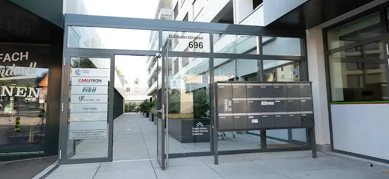 Go through the glass door at Badenerstrasse 696. Our office is on the right-hand side directly after the pizzeria. If the glass door is closed, ring the bell and we will be happy to open the door for you.